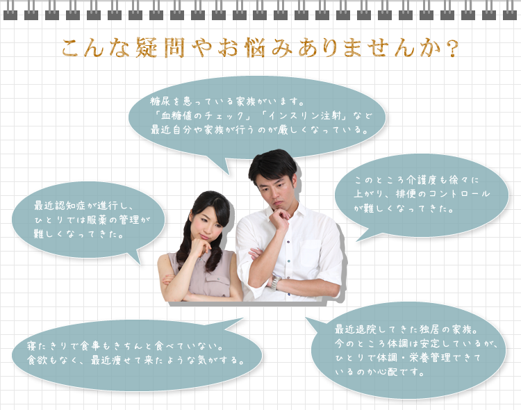 ご検討中のご家族様、ご本人様など、実際にサービスを利用するにあたり疑問・質問されることをまとめてみました。